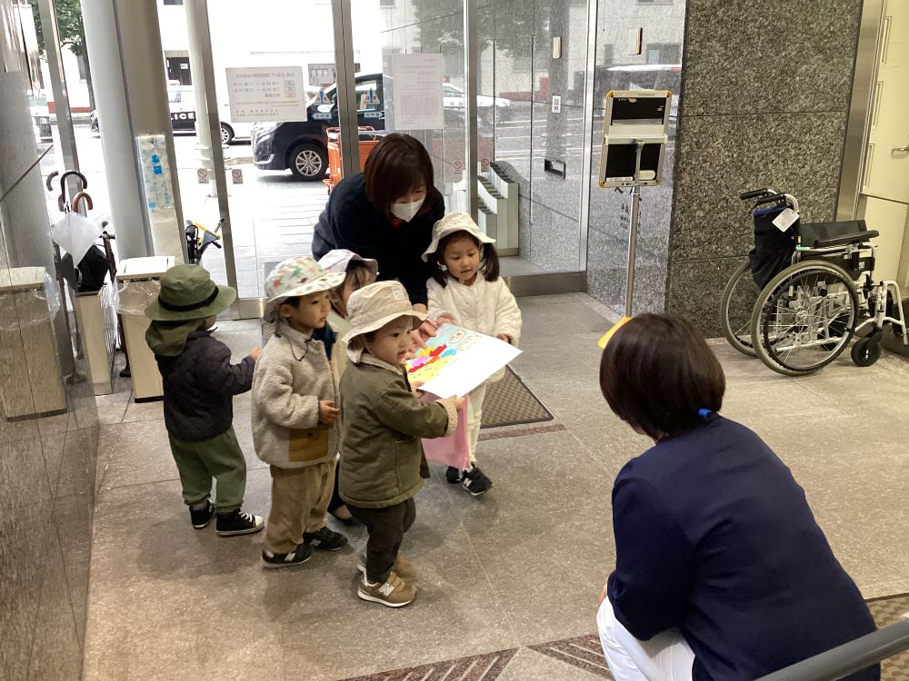 「お仕事頑張ってね!」「お顔、描いたんだよ」と、緊張しながらもお話していました。