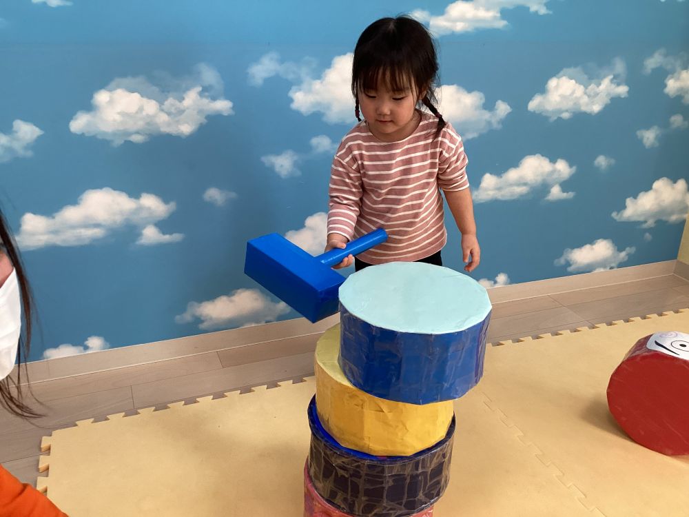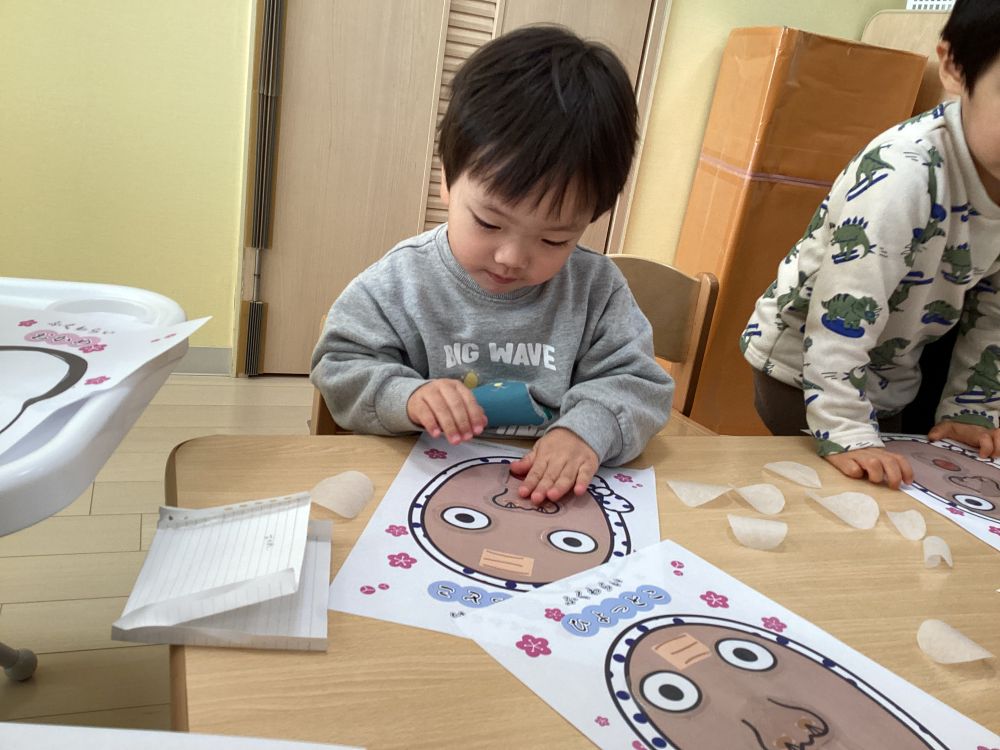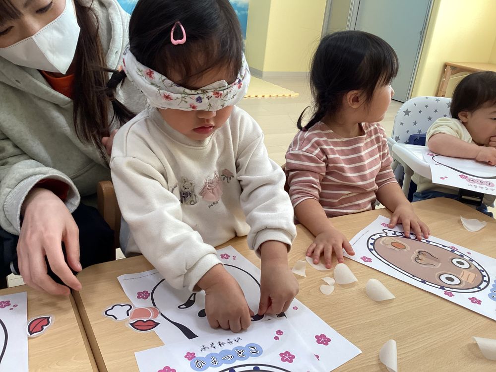 どうやってやるのかな?保育士にやり方を教えてもらい挑戦!